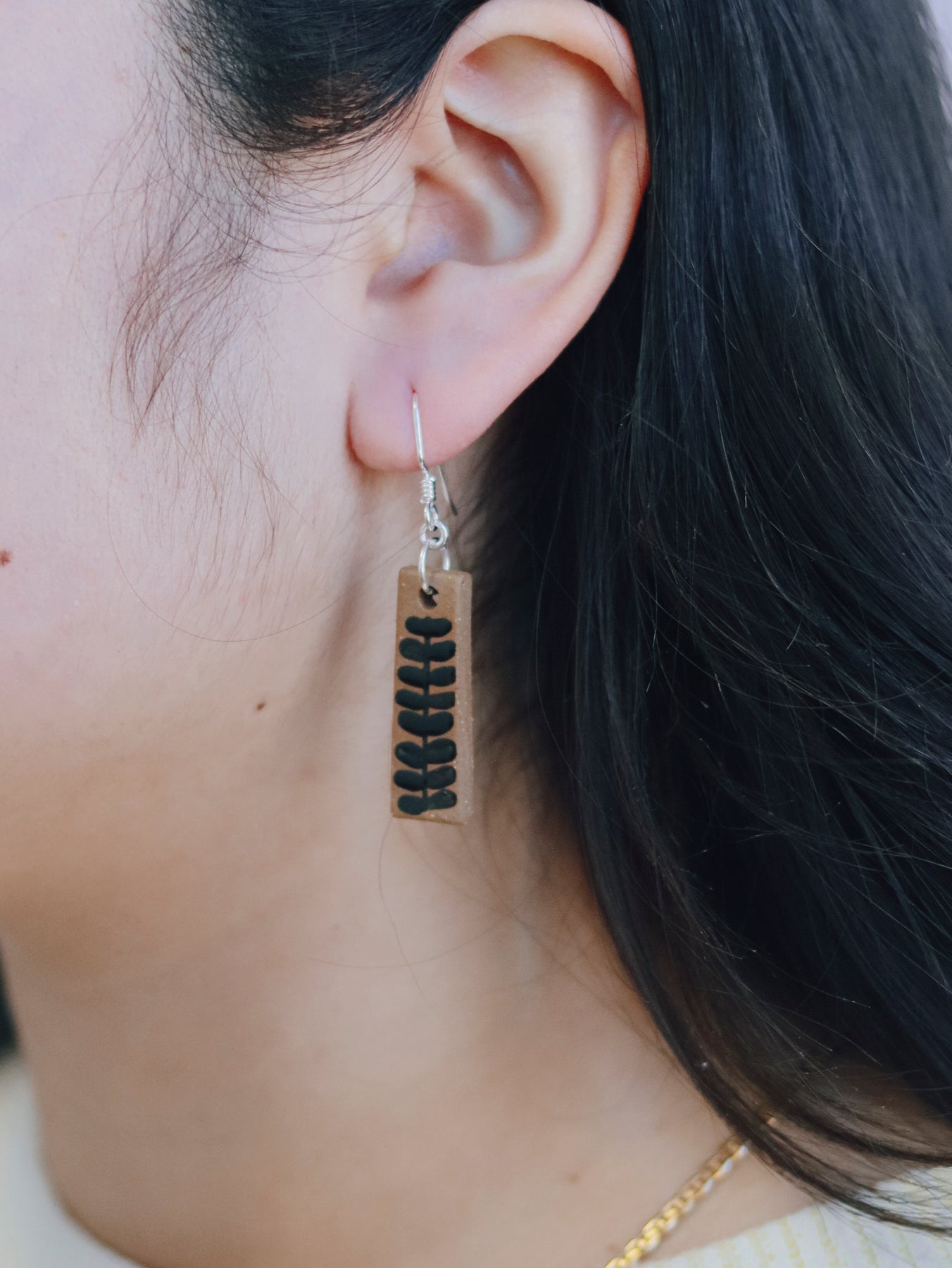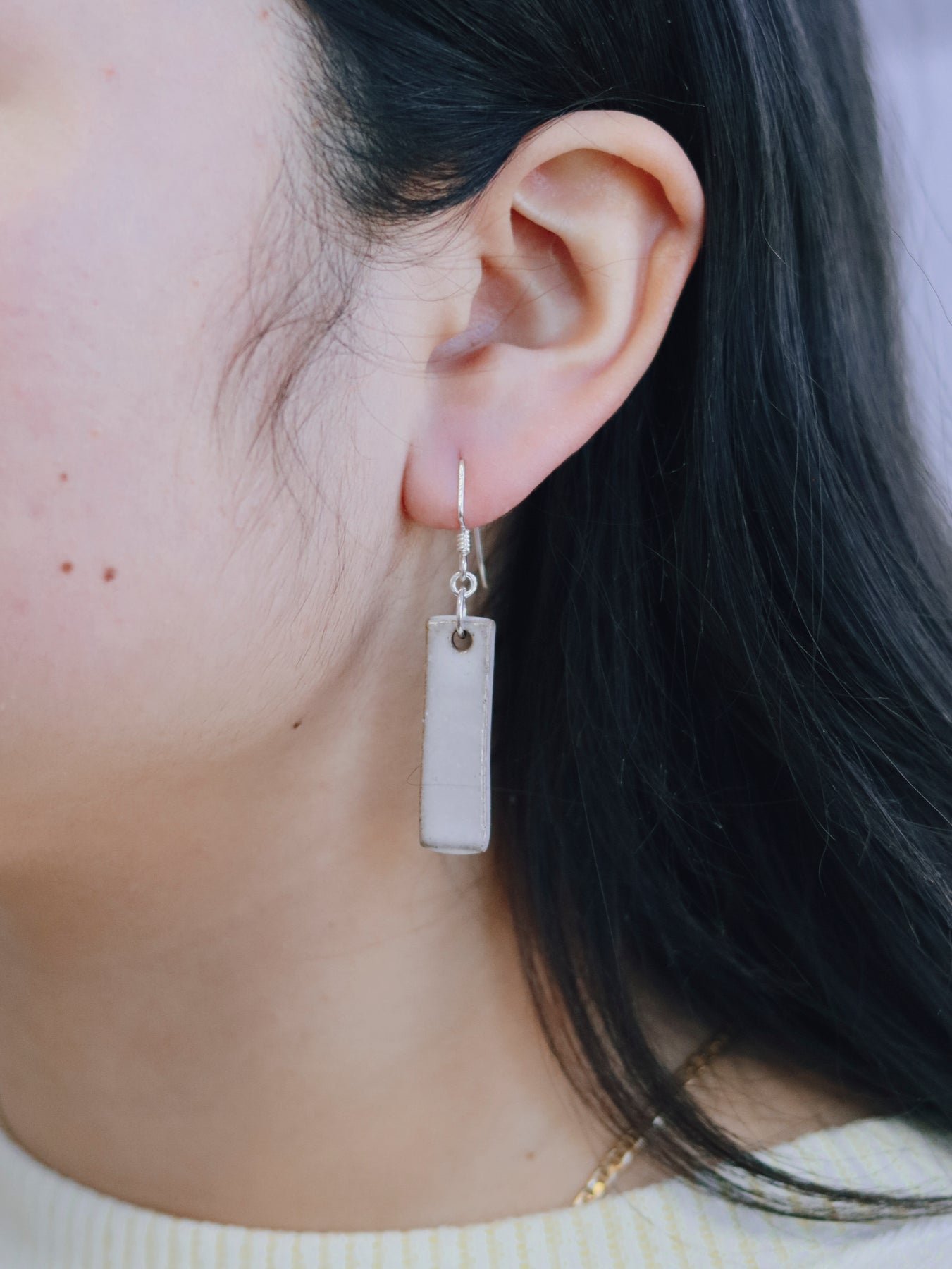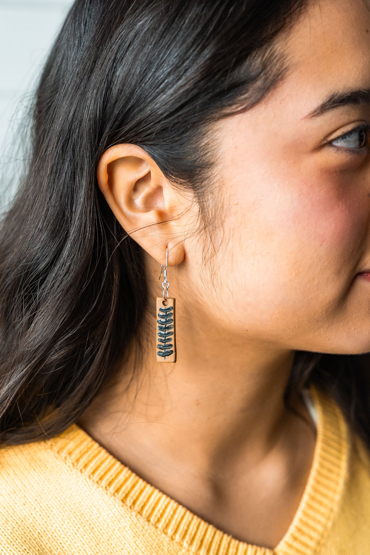 Our "Juvalay" Narrow Dangle Earrings are part of our Neighborhood Collection, a series of ceramic earrings inspired by individuals within our community, which are perfect for everyday wear or special occasions. You can read more about the inspiration behind the Neighborhood Collection here.