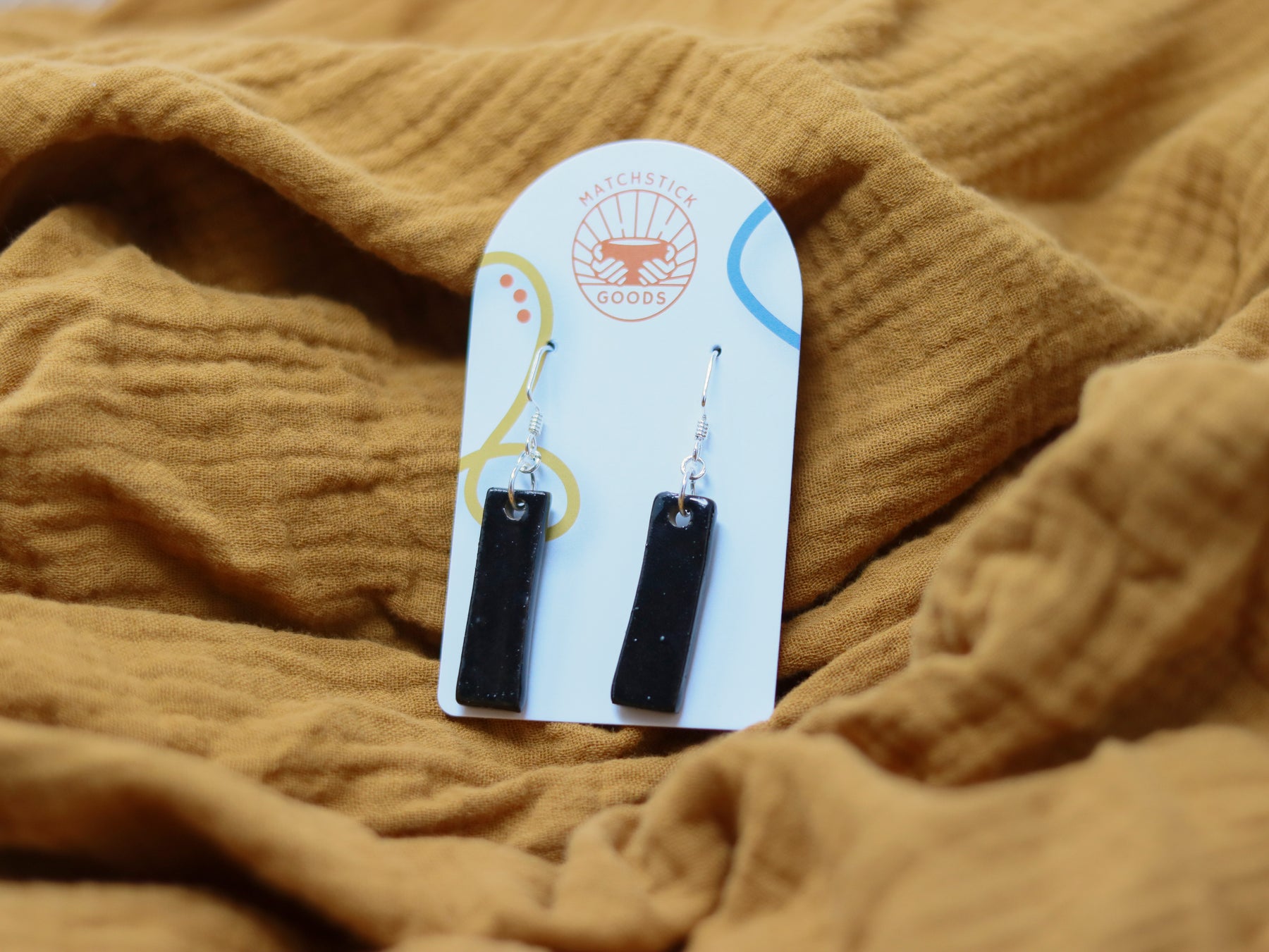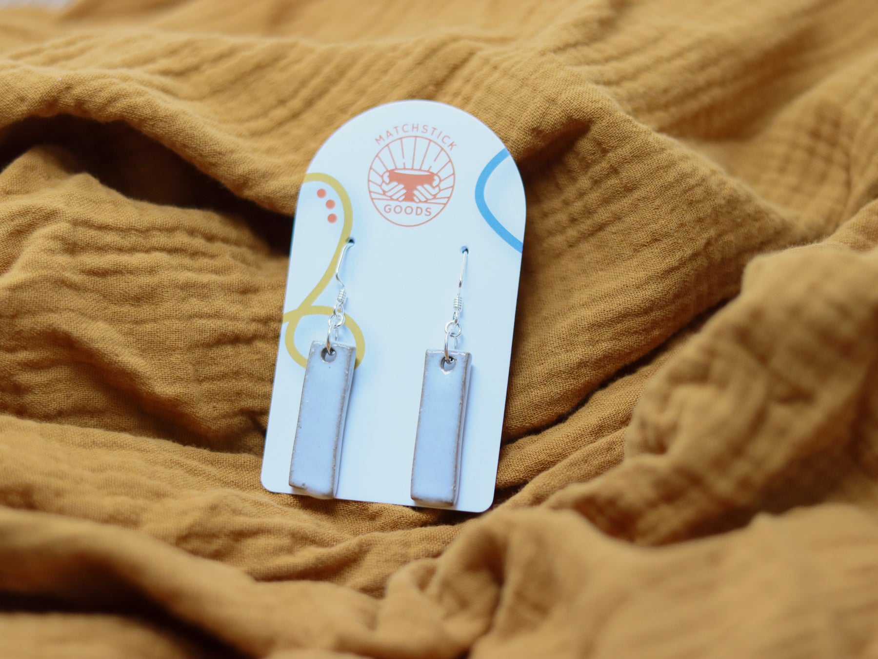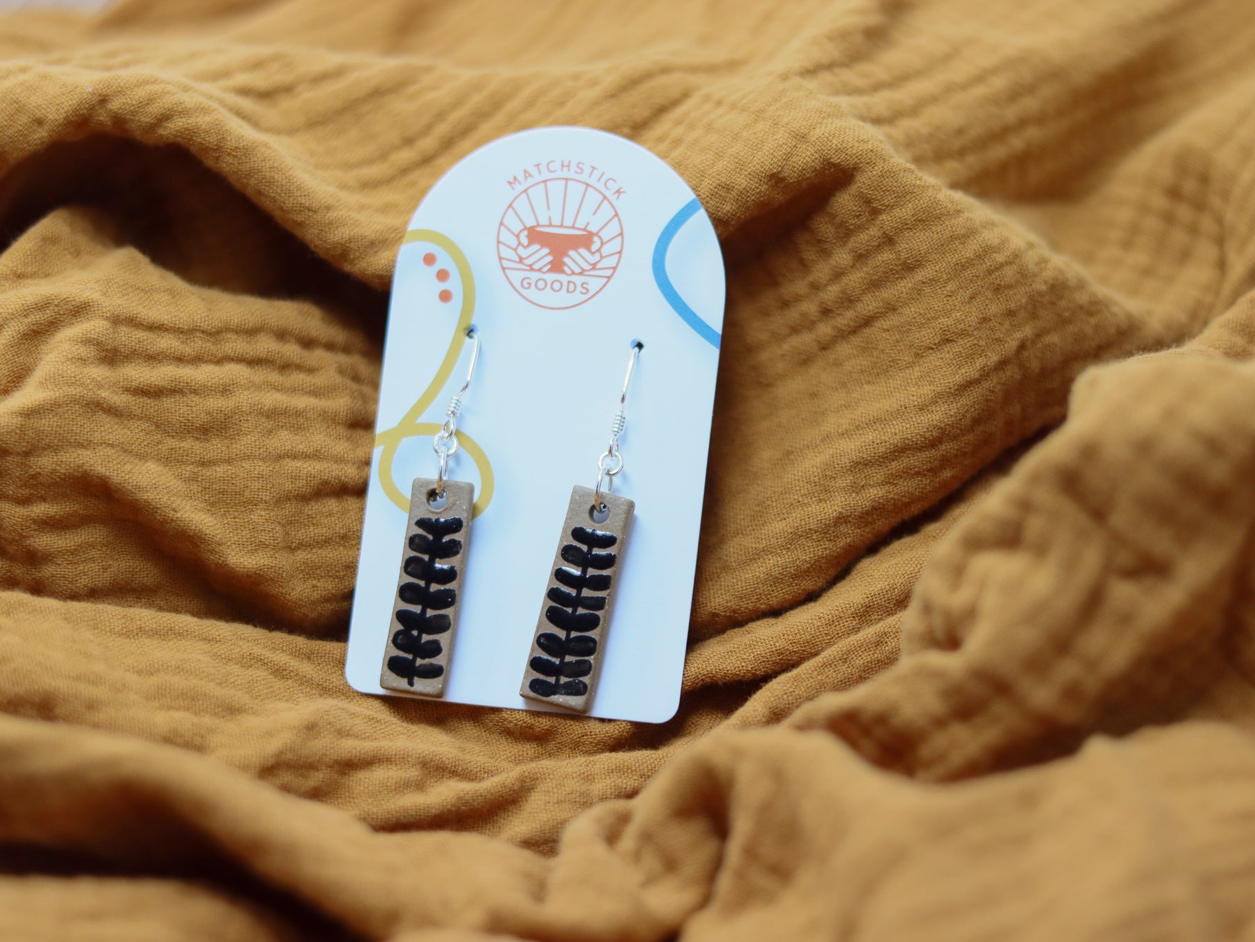 Our "Juvalay" Narrow Dangle Earrings are part of our Neighborhood Collection, a series of ceramic earrings inspired by individuals within our community, which are perfect for everyday wear or special occasions. You can read more about the inspiration behind the Neighborhood Collection here.