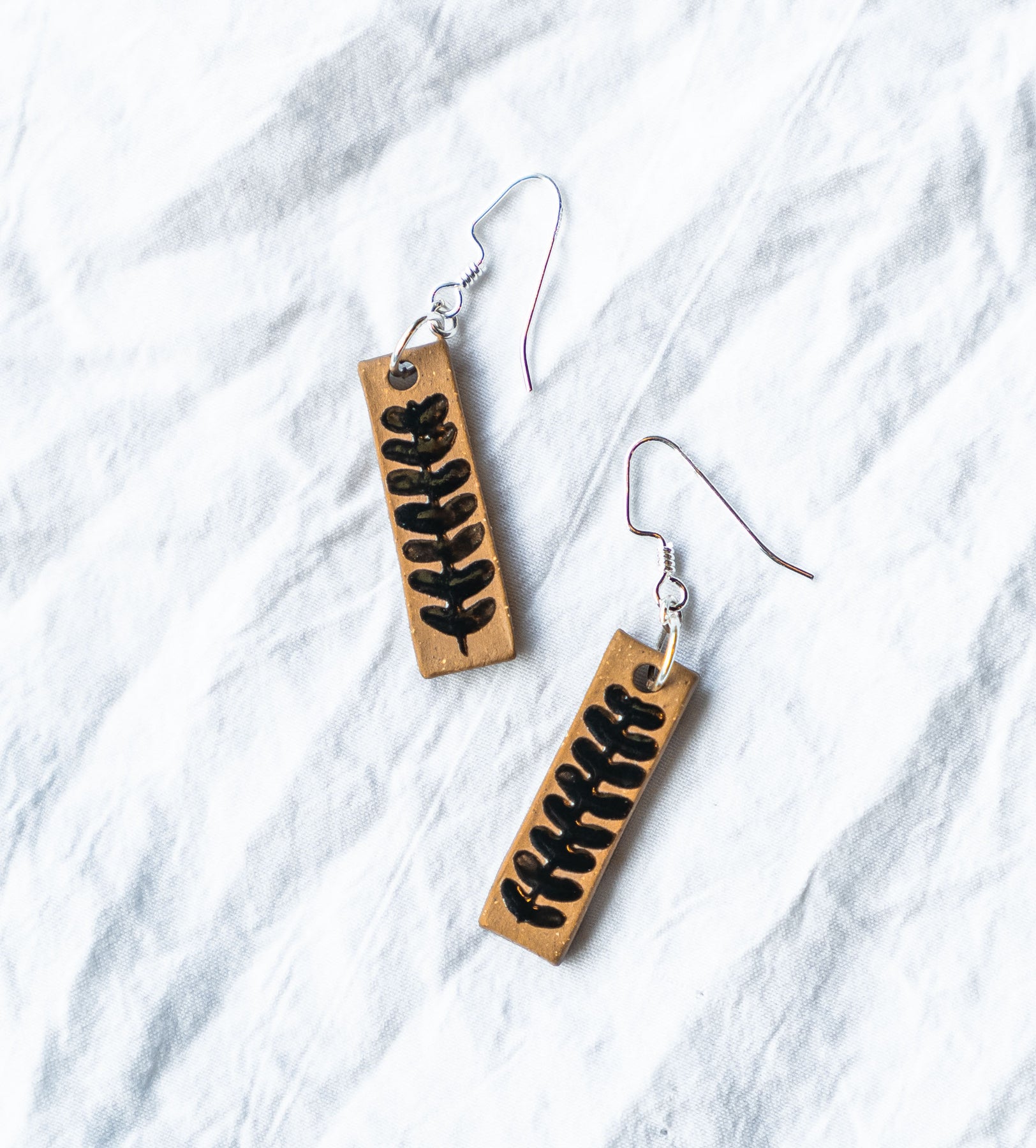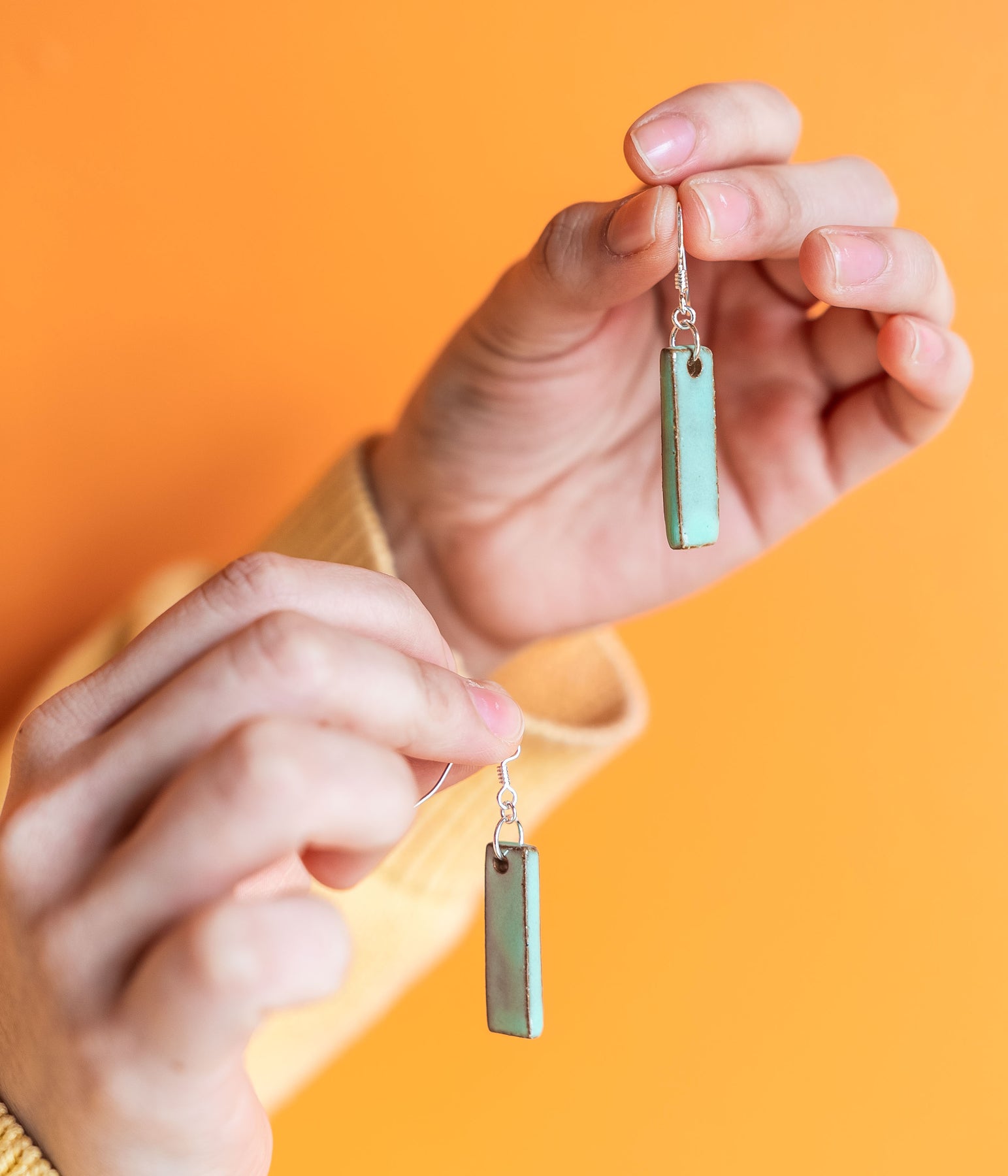 Our "Juvalay" Narrow Dangle Earrings are part of our Neighborhood Collection, a series of ceramic earrings inspired by individuals within our community, which are perfect for everyday wear or special occasions. You can read more about the inspiration behind the Neighborhood Collection here.