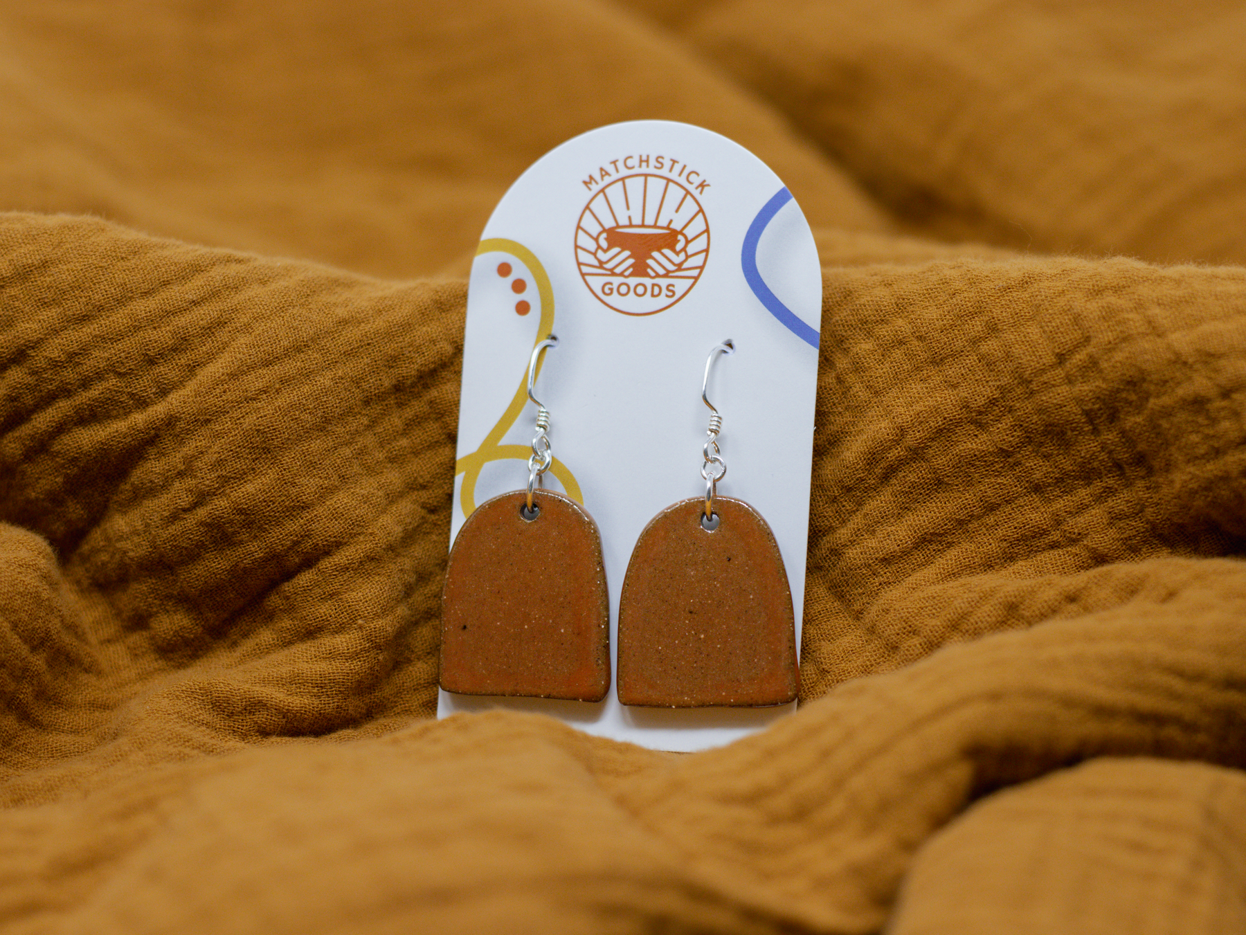 Our "Noranne" Arch Dangles are part of our Neighborhood Collection, a series of ceramic earrings inspired by individuals within our community, which are perfect for everyday wear or special occasions. You can read more about the inspiration behind the Neighborhood Collection here.